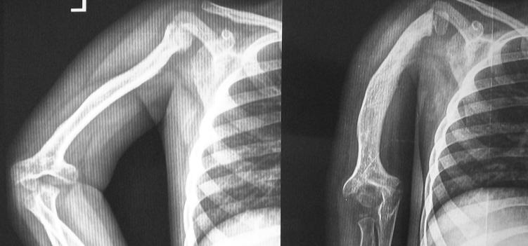 2. X-ray in the 1st week of symptoms did not show any changes of right humerus.